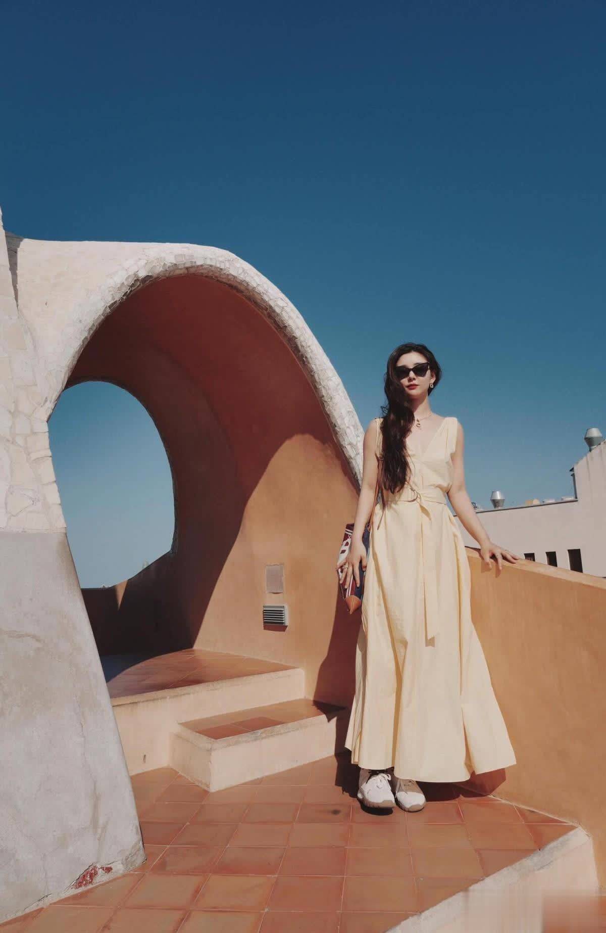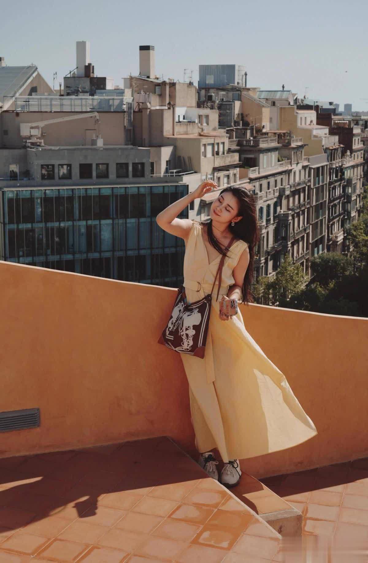在旅游时,李小萌偏爱休闲的穿搭风格。就像下面这身黄色连衣裙,搭配得休闲随性,却又不失少女感,很难想象她已经是一位母亲。温柔的米黄色十分适合春夏季节,穿上身超级显白。